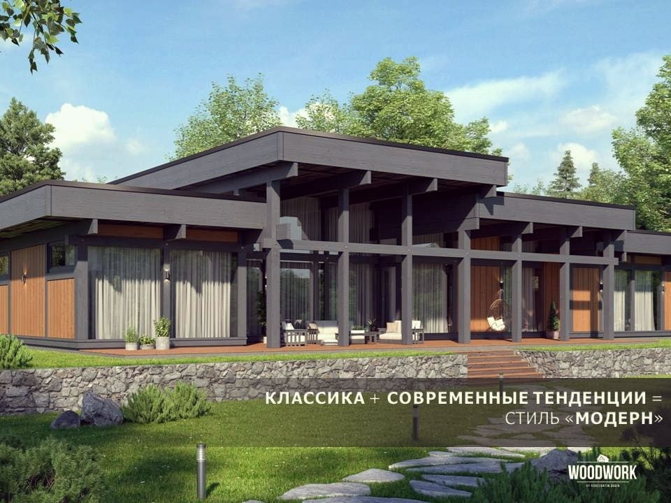 "Модерн" не уступает по популярности стилю "Шале" и сочетает в себе классику и современные тенденции.
